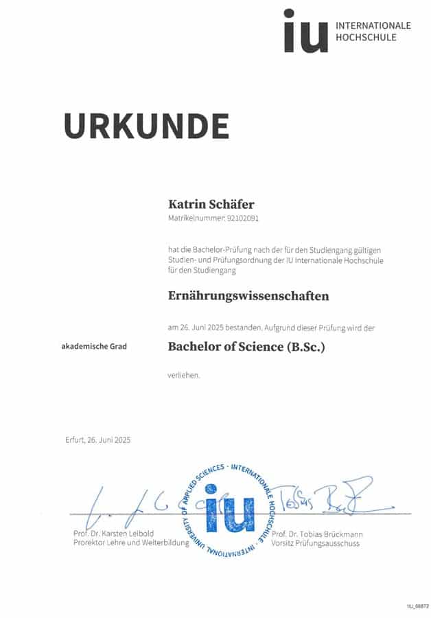 Zertifikat Ganzheitliche Ernährungsberaterin – Ernährungswissenschaftlerin und -beraterin Katrin Schäfer